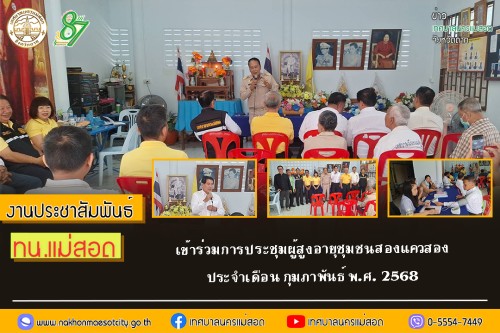เมื่อวันจันทร์ ที่ 17 กุมภาพันธ์ 2568 เวลา 09.00 น. ณ ที่ทำการชุมชนสองแควสอง เทศบาลนครแม่สอด อำเภอแม่สอด จังหวัดตาก