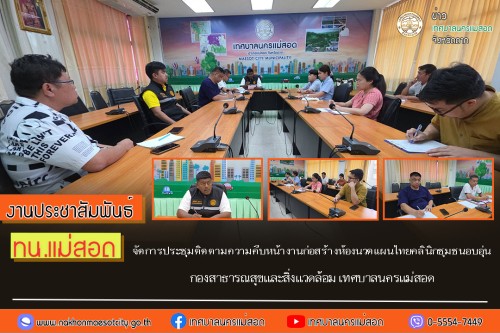 นายกุล เครือวีระ นายกเทศมนตรีนครแม่สอด มอบหมายให้ นายอภิปัตย์ อุปการะ รองนายกเทศมนตรีนครแม่สอด เป็นประธานการประชุมฯ พร้อมด้วย คณะผู้บริหาร คณะกรรมการโครงการฯ และเจ้าหน้าที่ที่เกี่ยวข้องเข้าร่วมประชุมติดตามความคืบหน้างานก่อสร้างห้องนวดแผนไทยคลินิกชุมชนอบอุ่น กองสาธารณสุขและสิ่งแวดล้อม เทศบาลนครแม่สอด