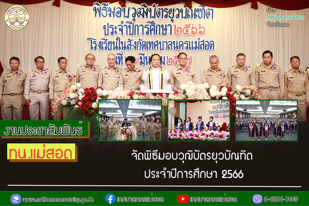 เทศบาลนครแม่สอด จัดพิธีมอบวุฒิบัตรยุวบัณฑิต ประจำปีการศึกษา 2566