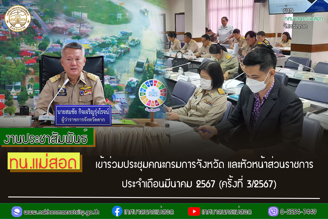ทน.แม่สอด เข้าร่วมประชุมคณะกรมการจังหวัด และหัวหน้าส่วนราชการ ประจำเดือนมีนาคม 2567 (ครั้งที่ 3/2567)