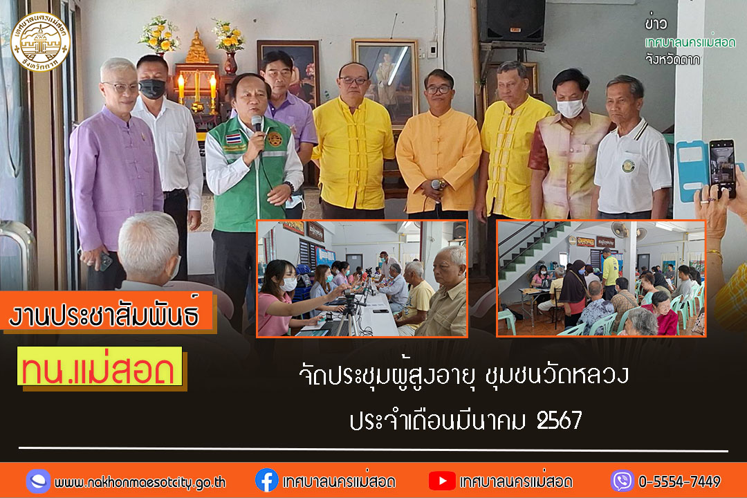 เทศบาลนครแม่สอด จัดประชุมผู้สูงอายุ ชุมชนวัดหลวง ประจำเดือนมีนาคม 2567