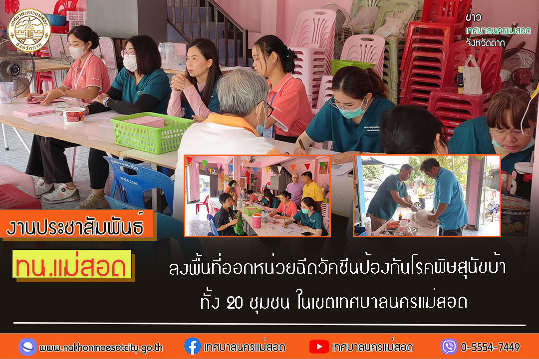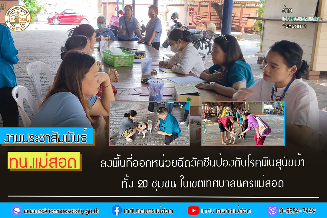 เทศบาลนครแม่สอด ลงพื้นที่ออกหน่วยฉีดวัคซีนป้องกันโรคพิษสุนัขบ้าทั้ง 20 ชุมชน ในเขตเทศบาลนครแม่สอด