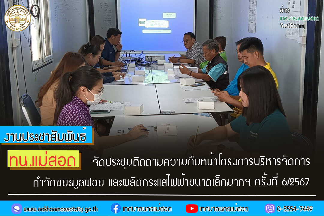 ทน.แม่สอด จัดประชุมติดตามความคืบหน้าโครงการบริหารจัดการกำจัดขยะมูลฝอย และผลิตกระแสไฟฟ้าขนาดเล็กมากฯ ครั้งที่ 6/2567