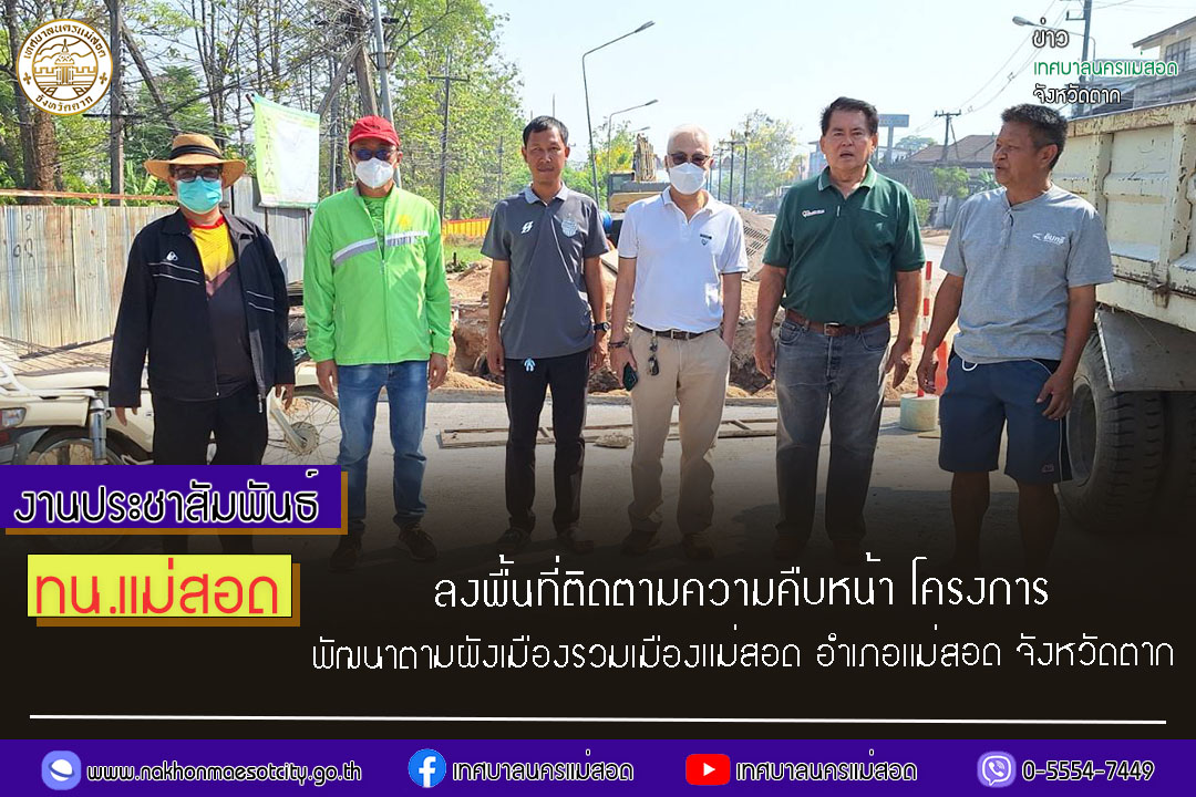 ทน.แม่สอด ลงพื้นที่ติดตามความคืบหน้า โครงการพัฒนาตามผังเมืองรวมเมืองแม่สอด อำเภอแม่สอด จังหวัดตาก