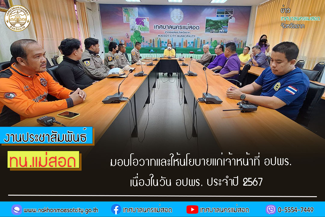 เทศบาลนครแม่สอด มอบโอวาทและให้นโยบายแก่เจ้าหน้าที่ อปพร. เนื่องในวัน อปพร. ประจำปี 2567