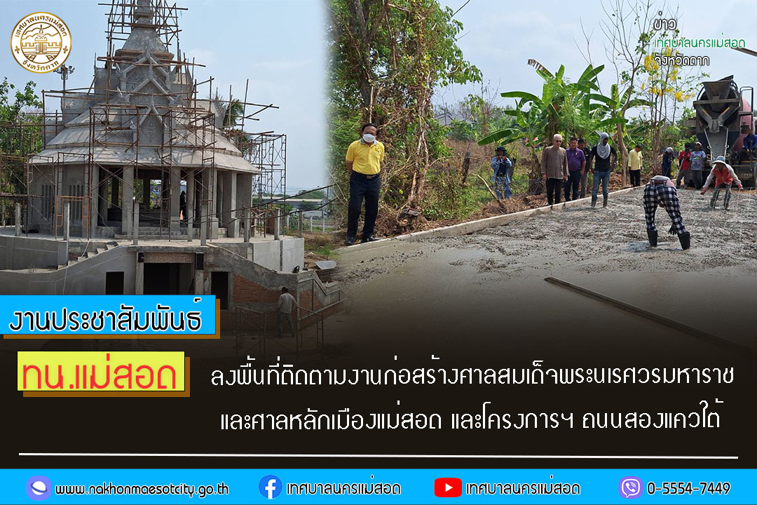ทน.แม่สอด ลงพื้นที่ติดตามงานก่อสร้างศาลสมเด็จพระนเรศวรมหาราช และศาลหลักเมืองแม่สอด และโครงการฯ ถนนสองแควใต้