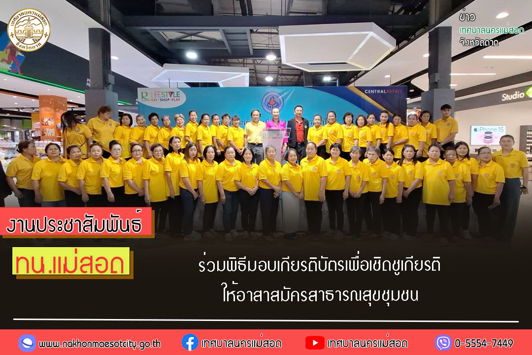 เทศบาลนครแม่สอด ร่วมพิธีมอบเกียรติบัตรเพื่อเชิดชูเกียรติให้อาสาสมัครสาธารณสุขชุมชน