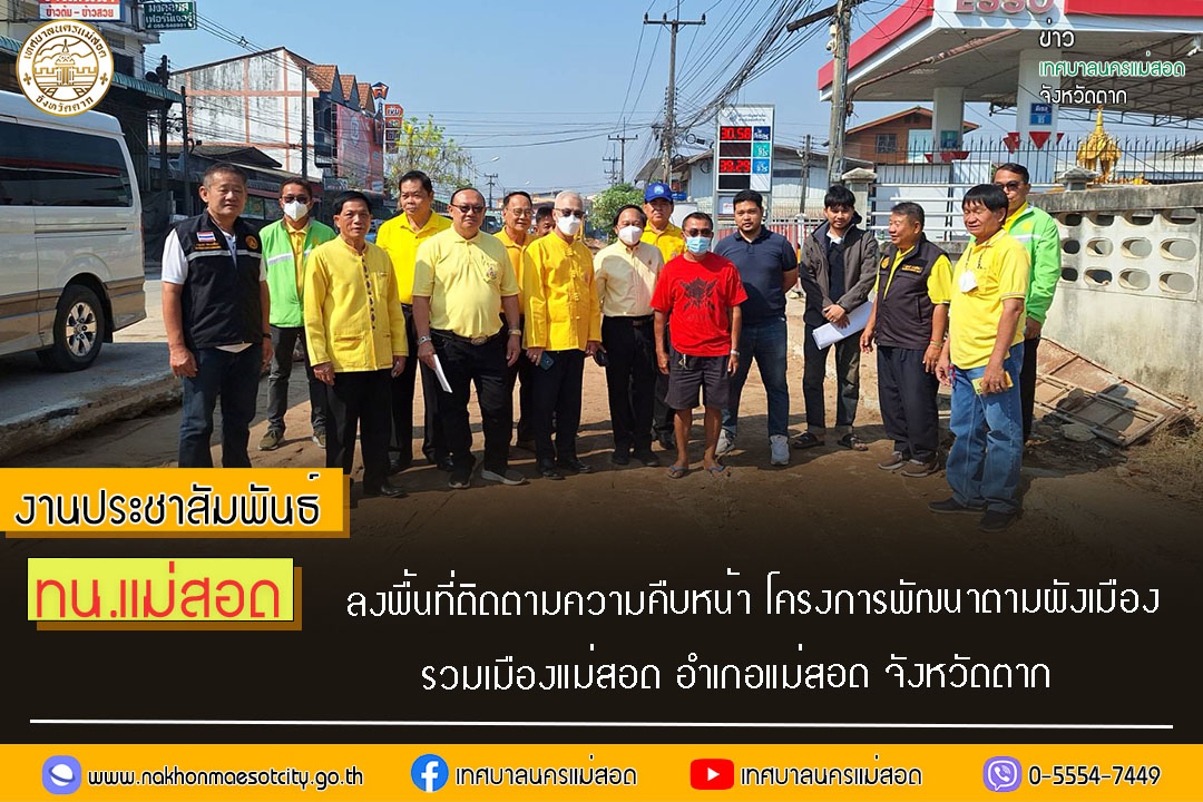 ทน.แม่สอด ลงพื้นที่ติดตามความคืบหน้า โครงการพัฒนาตามผังเมืองรวมเมืองแม่สอด อำเภอแม่สอด จังหวัดตาก