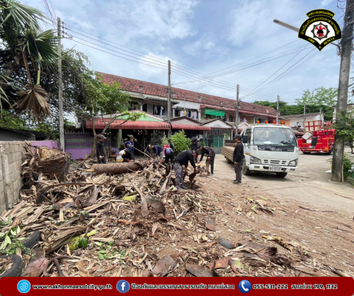 ดับเพลิงนครแม่สอด จึงนำรถยนต์บรรทุก 6 ล้อ และรถบรรทุกกระเช้าไฟฟ้า พร้อมอุปกรณ์ ดำเนินการตัดต้นไม้ดังกล่าว โดยใช้เลื่อยโซ่ยนต์ และใช้มีด ดำเนินการตัดจนแล้วเสร็จ พร้อมยกใส่รถยนต์บรรทุก 6 ล้อ ดำเนินการนำกิ่งไม้ไปทิ้งต่อไป เพื่อความเป็นระเบียบเรียบร้อย ความปลอดภัยต่อผู้ใช้รถใช้ถนน บริเวณดังกล่าว