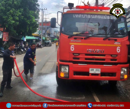 วันพุธที่ 10 กรกฎาคม 2567 ว่าที่ร้อยตรี ประเสริฐ ปวงละคร นายกเทศมนตรีนครแม่สอด มอบหมายให้เจ้าหน้าที่ดับเพลิงนครแม่สอด นำรถยนต์บรรทุกน้ำดับเพลิง จำนวน 1 คัน ร่วมกองสุขาภิบาลและสิ่งแวดล้อม ออกดำเนินการฉีดล้างทำความสะอาดตลาดสดในเขตเทศบาลนครแม่สอด อำเภอแม่สอด จังหวัดตาก ได้แก่ 1. ตลาดสดบ้านเหนือ 2. ตลาดสดประชารักษ์ 3. ตลาดสดเทศบาลนครแม่สอด (ตลาดศรีมอย) เพื่อให้เป็นตลาดสดที่สะอาด น่าใช้บริการ ถูกสุขลักษณะ และมีทัศนียภาพที่สวยงาม