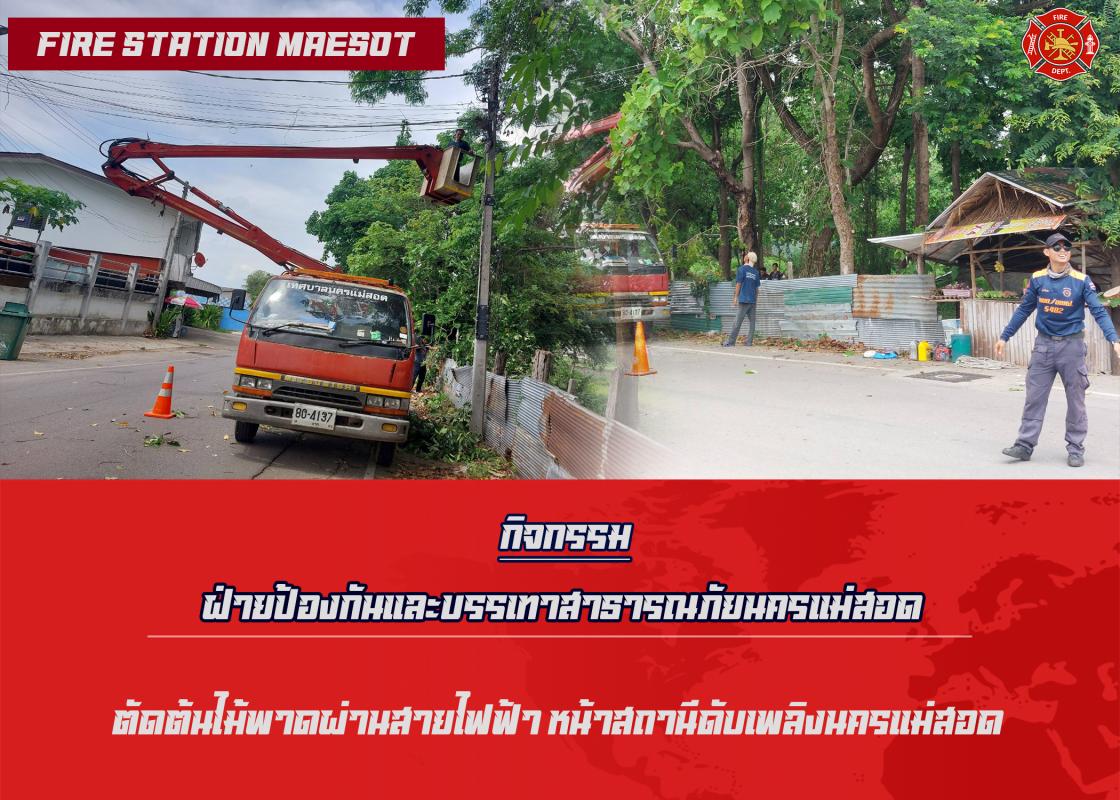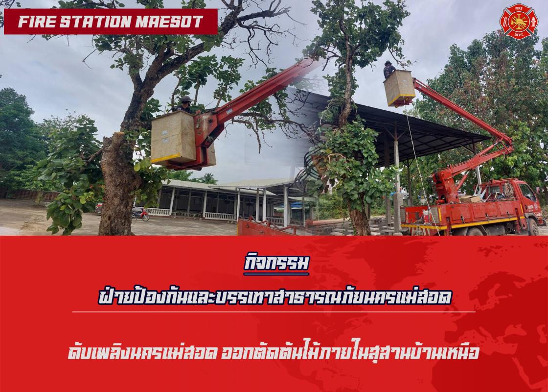 ดับเพลิงนครแม่สอด ตัดต้นไม้หน้าสถานีดับเพลิงนครแม่สอด