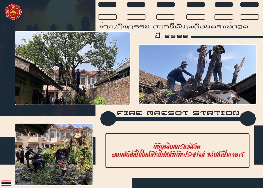 ดับเพลิงนครแม่สอด ออกตัดต้นไม้ใกล้สายไฟหน้าบ้านประชาชน ซอยน้ำดื่มเจอาร์