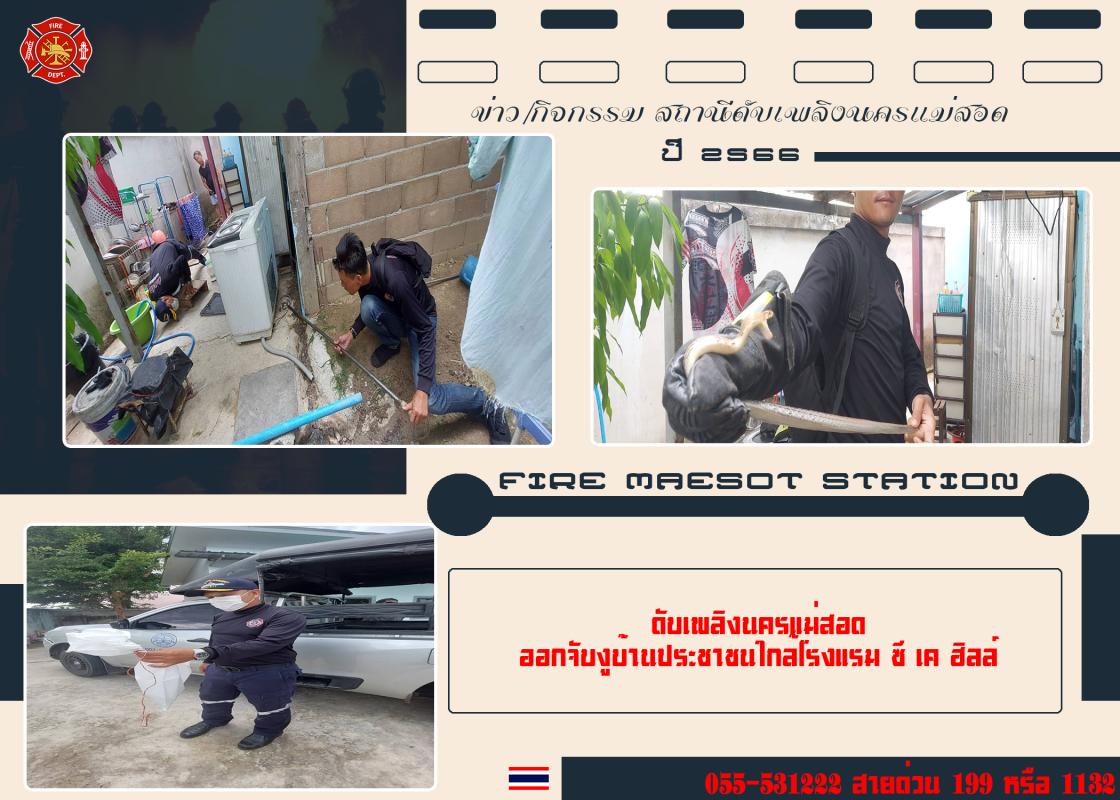 ดับเพลิงนครแม่สอด ออกจับงูเข้าบ้านประชาชนใกล้โรงแรม ซี เค ฮิลล์