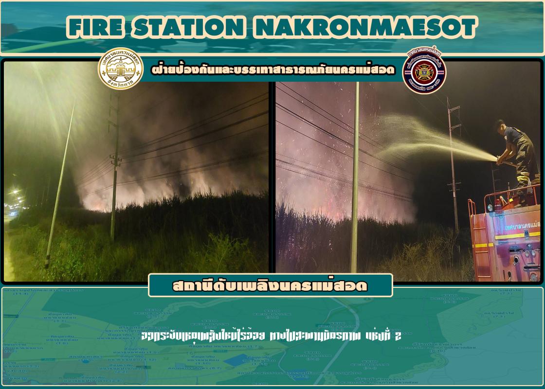 ดับเพลิงนครแม่สอด ออกระงับเหตุเพลิงไหม้หญ้า บริเวณหลังเทสโก้โลตัสแม่สอด