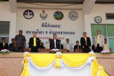 ในช่วงเวลา 15.00 น. ณ สนามกีฬา 5 อำเภอชายแดน ดร.สันติ ป่าหวาย อธิบดีกรมพลศึกษา เป็นประธานในพิธีส่งมอบสนาม โดยมี ดร.เทอดเกียรติ ชินสรนันท์ นายกเทศมนตรีนครแม่สอด เป็นผู้กล่าวรายงาน พร้อมลงนามบันทึกข้อตกลงความร่วมมือในการพัฒนาคุณภาพการศึกษาการจัดการกีฬา การส่งเสริมการพลศึกษา และนันทนาการ ระหว่าง กรมพลศึกษา กระทรวงการท่องเที่ยวและกีฬา กับเทศบาลนครแม่สอด และชมการแสดง ของนักเรียนในสังกัดเทศบาลนครแม่สอด พร้อมแข่งขันฟุตบอลกระซับมิตร