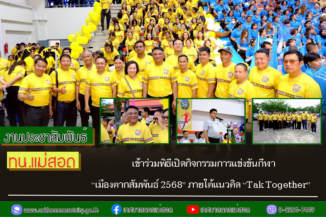 เทศบาลนครแม่สอด เข้าร่วมพิธีเปิดกิจกรรมการแข่งขันกีฬา “เมืองตากสัมพันธ์ 2568” ภายใต้แนวคิด “Tak Together”