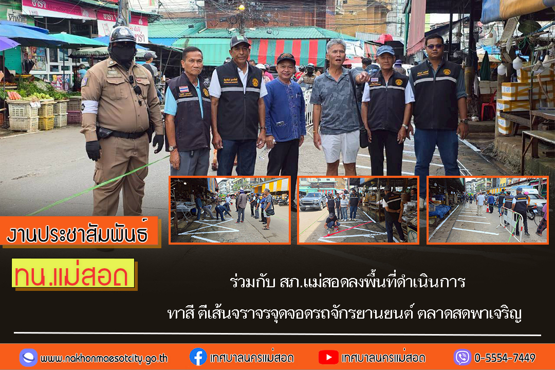 เทศบาลนครแม่สอด ร่วมกับ สภ.แม่สอดลงพื้นที่ดำเนินการทาสี ตีเส้นจราจรจุดจอดรถจักรยานยนต์ ตลาดสดพาเจริญ
