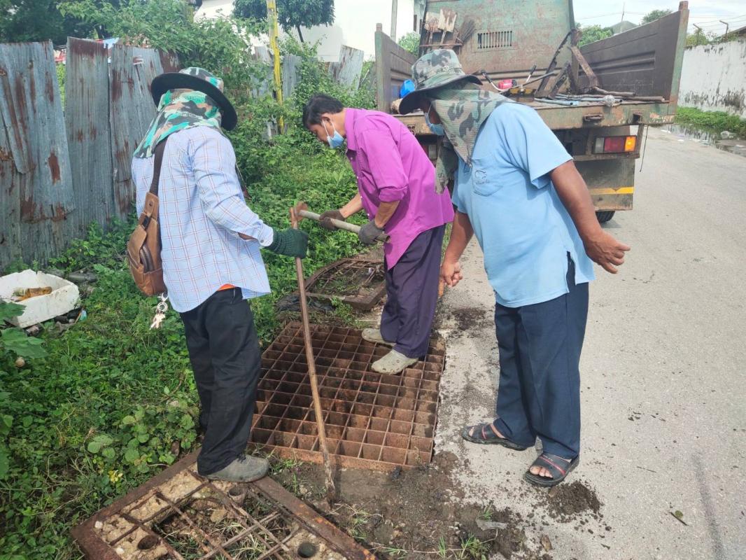 ออกดำเนินการตักขยะในตะแกรงกั้นในท่อระบายน้ำ บริเวณร้านเซเว่น อีเลฟเว่น (โรงเรียนสรรพวิทยาคม)
