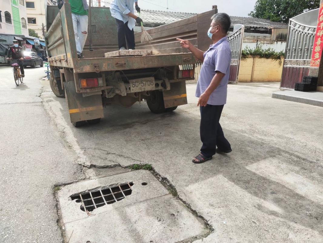 ออกสำรวจฝาท่อระบายน้ำชำรุด บริเวณถนนหน้าร้านอาหารกวางตุ้ง