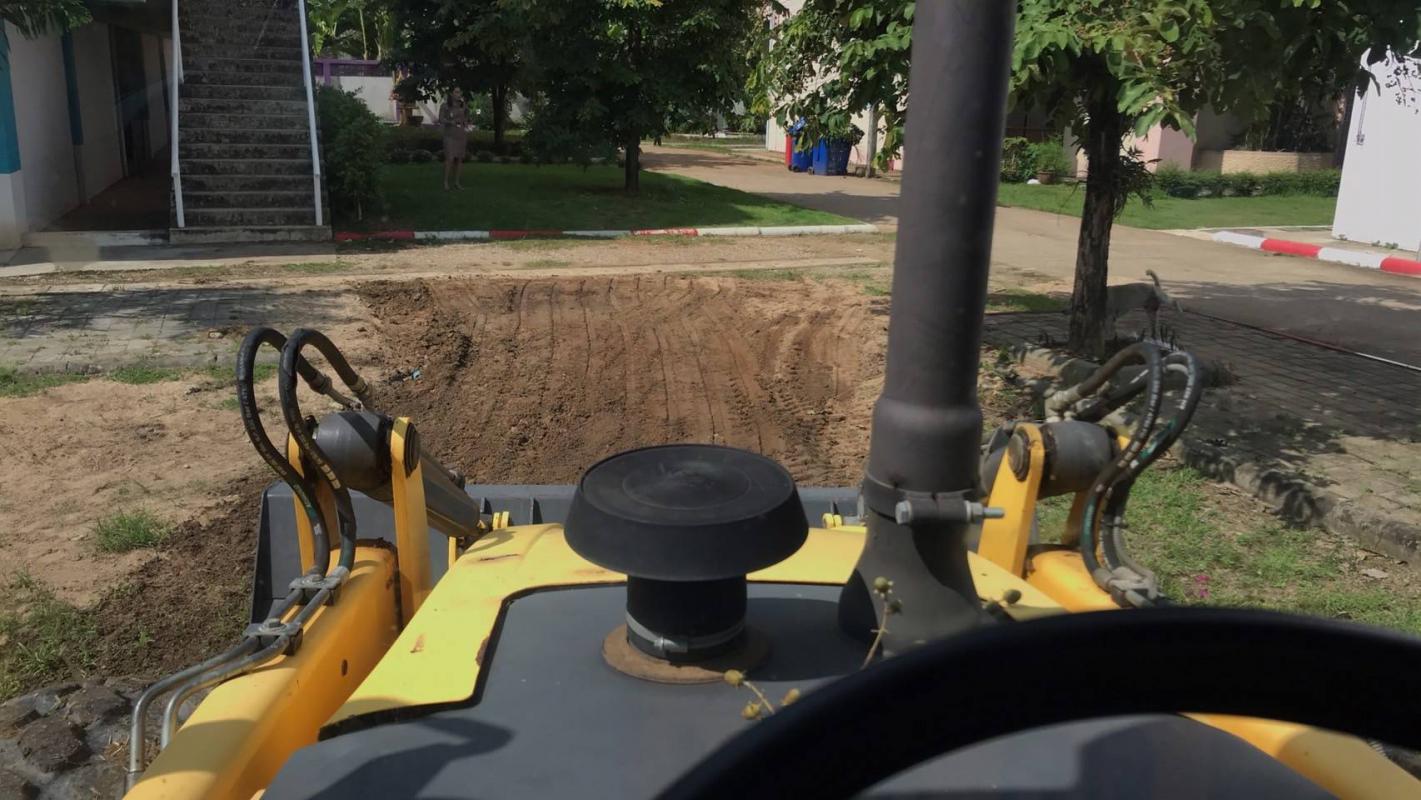 ออกดำเนินการขุดวางท่อระบายน้ำ บริเวณพื้นที่หมู่บ้านมั่นคง บัวคูณ 1