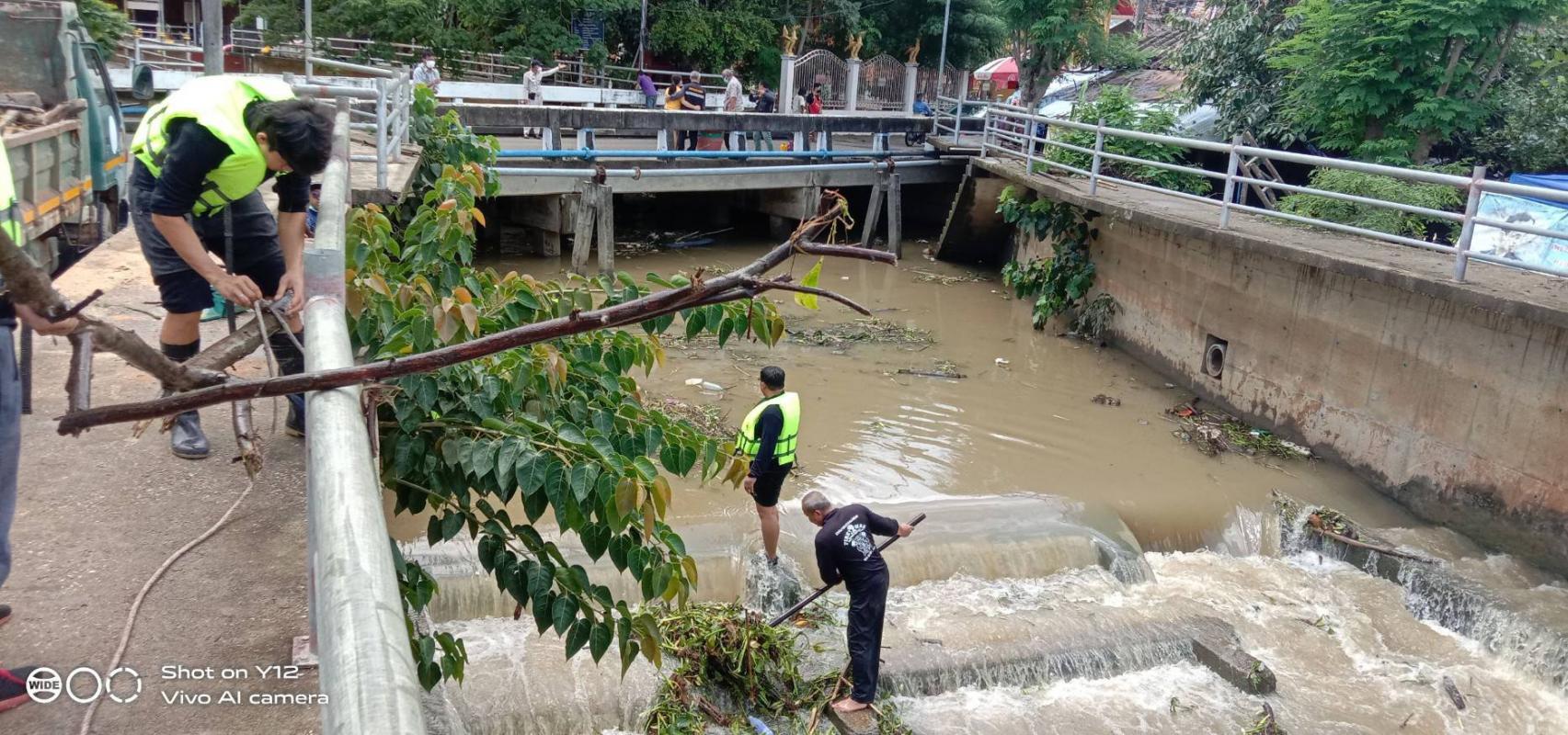 ออกดำเนินการเก็บขนเศษวัชพืชในลำห้วย บริเวณสะพานวัดชุมพล