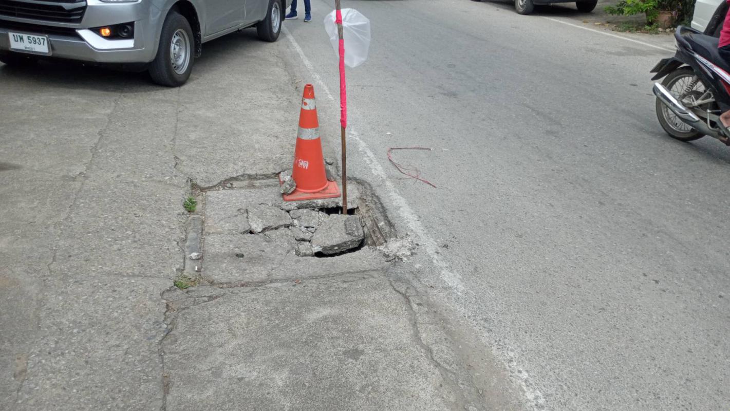 ออกดำเนินการเปลี่ยนฝาท่อระบายน้ำชำรุด บริเวณชุมชนบ้านทุ่ง ตรงข้ามปั๊มนอร์ท