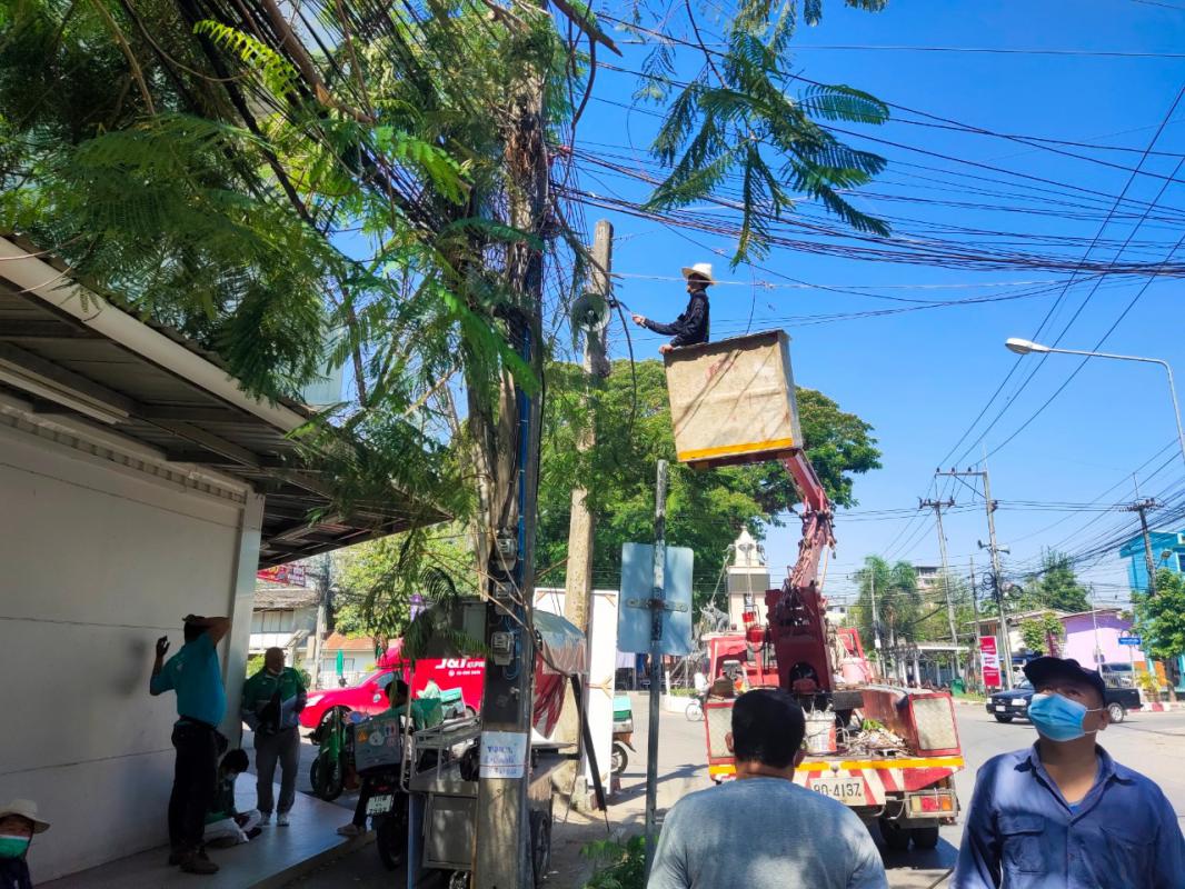 ออกตัด/ขนกิ่งไม้ในลำราง บริเวณร้านเทสโก้โลตัส เอ็กซ์เพรส และป้อมตำรวจจราจรแม่สอด ถนนประสาทวิถี