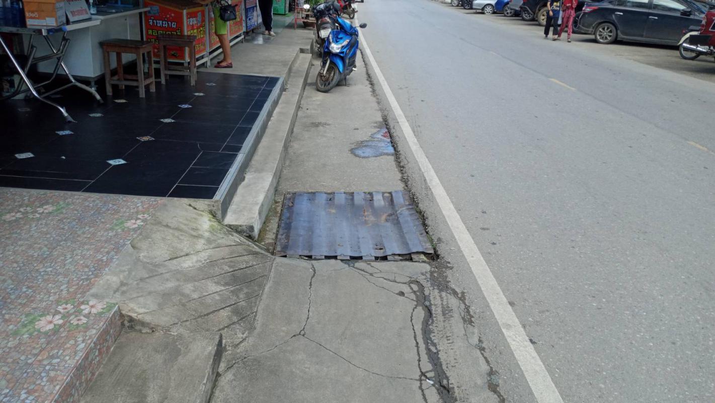 ออกสำรวจฝาท่อระบายน้ำชำรุด บริเวณร้านขายล็อตตารี่ ด้านหน้าโรงพยาบาลแม่สอด