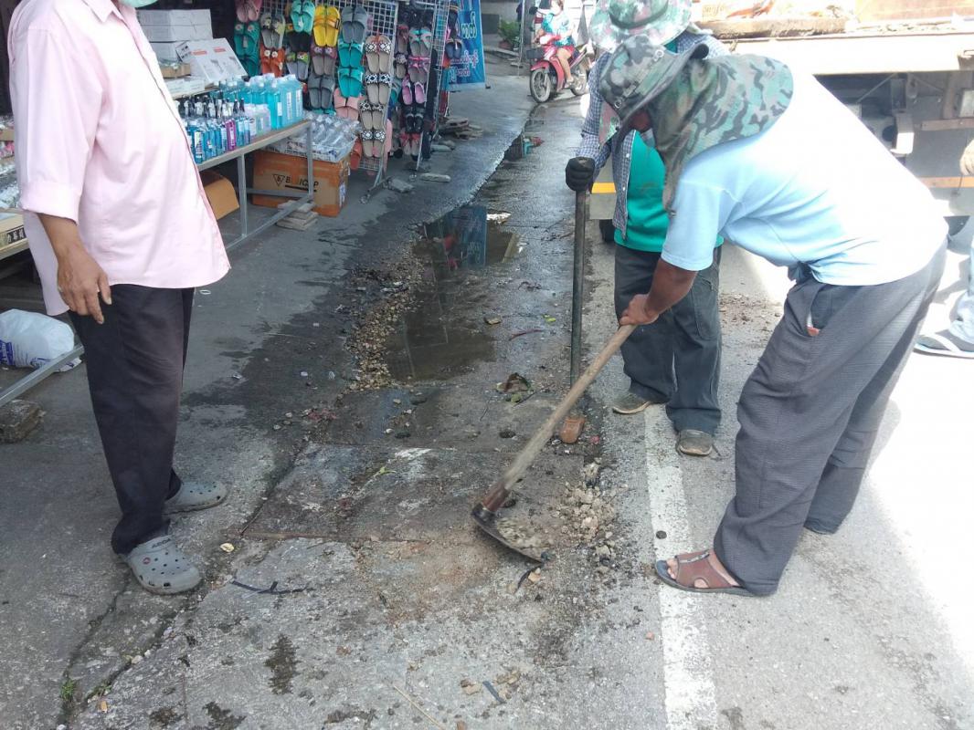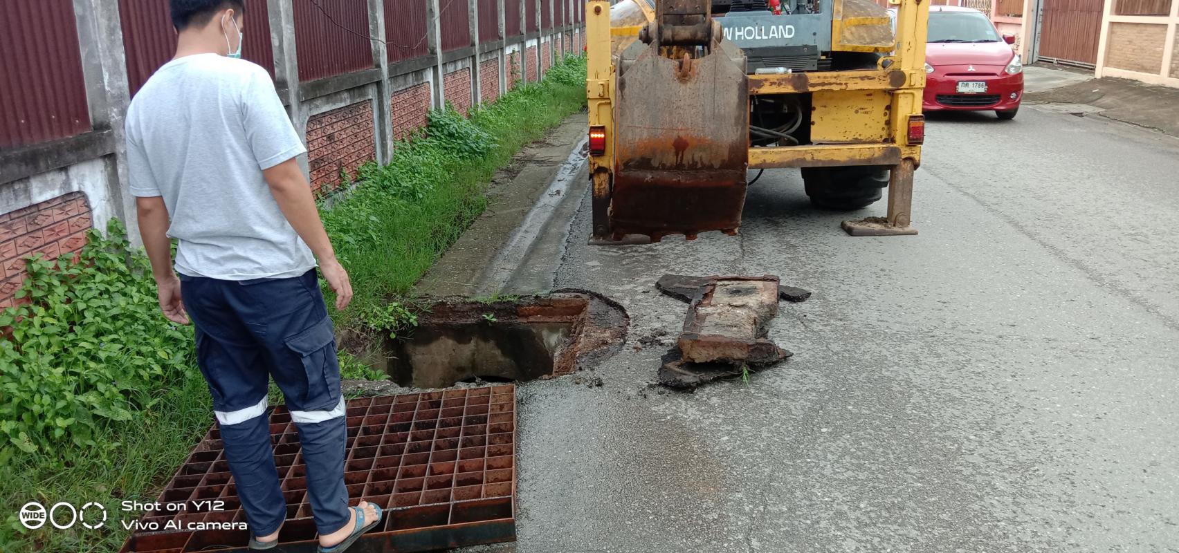 ออกเปลี่ยนฝาท่อระบายน้ำชำรุด บริเวณตรงข้ามร้านอาหารเต็กโอชา