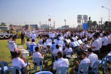 จากนั้น ที่บริเวณหน้าศาลสมเด็จพระนเรศวรมหาราช เทศบาลนครแม่สอด ได้มีการร่วมกิจกรรมรวมพลังแห่งความภักดี โดยมี ดร.เทอดเกียรติ ชินสรนันท์ นายกเทศมนตรีนครแม่สอด เป็นประธานในพิธี โดยมีคณะผู้บริหาร รองนายกเทศมนตรี ที่ปรึกษา และเลขานุการนายกเทศมนตรีนครแม่สอด สมาชิกสภาเทศบาลนครแม่สอด หัวหน้าส่วนการงาน ข้าราชการ พนักงาน เทศบาลนครแม่สอดคณะครูอาจารย์ ในสังกัดเทศบาลนครแม่สอด นักเรียน ผู้นำชุมชน ประชาชน เทศบาลนครแม่สอด จำนวนนับพันคน จัดเดินขบวนเฉลิมพระเกียรติ โดยมีวงโยธวาทิต นำขบวน เพื่อร่วมพิธีในการรวมพลังแห่งความภักดี ณ.ลานกิจกรรมพิธีรำลึกในพระมหากรุณาธิคุณและถวายความอาลัยพระบาทสมเด็จพระปรมินทรมหาภูมิพลอดุลยเดช รัชกาลที่ 9 โดยนายกเทศมนตรีนครแม่สอดวางพุ่มดอกไม้สักการะ จุดรูปเทียนเครื่องทองน้อย ยืนสงบนิ่ง 89 วินาที ผู้ร่วมกิจกรรมร้องเพลง 1.ตามรอยพ่อ 2.รูปที่มีทุกบ้าน 3.สรรเสริญพระบารมี จากนั้นขบวนได้เคลื่อนออกจากลานหน้าป้ายแสดงความอาลัยรัชกาลที่ 9 เดินขบวนไปยังหน้าสำนักงานเทศบาลนครแม่สอด และร่วมพิธีถวายพระพรชัยมงคล สมเด็จพระเจ้าอยู่หัวมหาวชิราลงกรณบดินทรเทพยวรางกูร รัชกาลที่ 10 โดย ดร.เทอดเกียรติ ชินสรนันท์ นายกเทศมนตรีนครแม่สอด นำวางพานพุ่ม เปิดกรวยถวายราชสักการะ และกล่าวนำ “ทรงพระเจริญ” จากนั้น นักเรียนโรงเรียนในสังกัดเทศบาลนครแม่สอดแปรอักษรและดำเนินกิจกรรมบำเพ็ญประโยชน์ ในวันครู