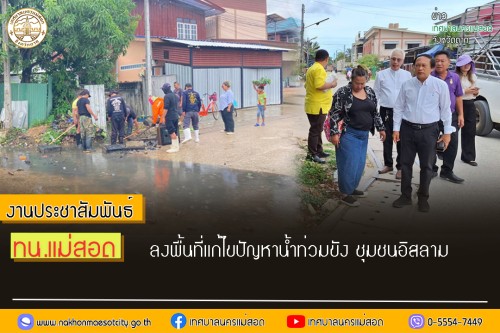 ลงพื้นที่แก้ไขปัญหาน้ำท่วมขัง บริเวณทางแยกถนนชุมชนอิสลาม และบริเวณตรอกซอยสุเหร่ามัสยิดมูฮายีริน ชุมชนอิสลาม โดยดำเนินการขุดลอกท่อและร่องระบายน้ำที่อุดตันจากเศษขยะ กิ่งไม้ วัชพืชที่กีดขวางทางน้ำ เพื่อแก้ไขปัญหาน้ำท่วมขัง และบรรเทาความเดือดร้อนของประชาชนที่พักอาศัย และที่สัญจรไปมาในบริเวณดังกล่าว