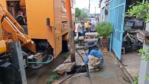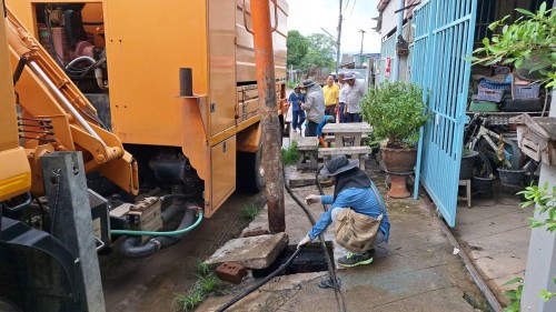 ว่าที่ร้อยตรี ประเสริฐ ปวงละคร นายกเทศมนตรีนครแม่สอด มอบหมายให้ นายไกรสร กิจการ รองนายกเทศมนตรีนครแม่สอด พร้อมด้วย คณะผู้บริหาร สมาชิกสภาเทศบาล และเจ้าหน้าที่ที่เกี่ยวข้อง ลงพื้นที่ดำเนินการดูดโคลนในท่อที่ขวางทางน้ำออกและขุดลอกเศษวัสดุต่าง ๆ ที่ตกค้าง เพื่อรองรับน้ำเสียจากครัวเรือน และให้น้ำสามารถระบายได้อย่างสะดวก รวดเร็ว รวมทั้งเพื่อกำจัดกลิ่นเหม็น และสิ่งปฏิกูลต่าง ๆ
