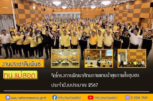 ว่าที่ร้อยตรี ประเสริฐ ปวงละคร นายกเทศมนตรีนครแม่สอด พร้อมด้วยคณะผู้บริหาร สมาชิกสภาเทศบาล และเจ้าหน้าที่คลินิกชุมชนอบอุ่น กองสาธารณสุขและสิ่งแวดล้อม เข้าร่วมโครงการพัฒนาศักยภาพแกนนำสุขภาพในชุมชน ประจำปีงบประมาณ 2567