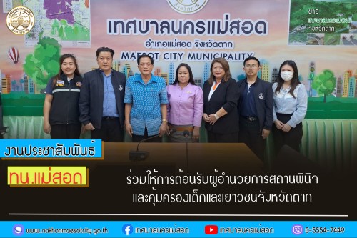 ว่าที่ร้อยตรี ประเสริฐ ปวงละคร นายกเทศมนตรีนครแม่สอด มอบหมายให้ นายกรณพงศ์ คงปาน รองนายกเทศมนตรีนครแม่สอด และเจ้าหน้าที่ที่เกี่ยวข้อง ร่วมให้การต้อนรับ นายจตุพล อธิคม ผู้อำนวยการสถานพินิจและคุ้มครองเด็กและเยาวชนจังหวัดตาก เพื่อขอรับทราบข้อมูล เด็กนักเรียนต่างชาติในสังกัดเทศบาลที่เกิดในประเทศไทยที่ไม่มีสถานะทางทะเบียนราษฎร เพื่อต้องการเปลี่ยนแปลงสถานะ ให้เด็กได้มีสิทธิ การรักษาพยาบาล การศึกษาต่อ และมีนามสกุล