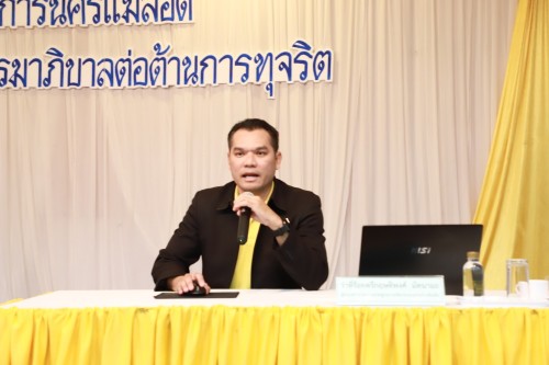 โดยมี นายศุภกร เบญจกัญญา ปลัดเทศบาลนครแม่สอด กล่าวรายงานถึงวัตถุประสงค์การจัดโครงการนครแม่สอดเสริมสร้างธรรมาภิบาลต่อต้านการทุจริต ดังนี้