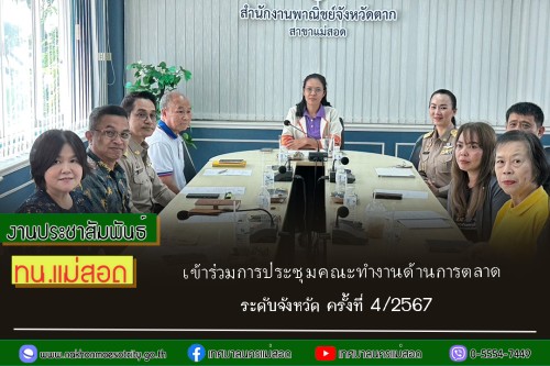 เมื่อวันพุธที่ 13 พฤศจิกายน 2567 เวลา 13.30 น. ณ ห้องประชุมศูนย์เครือข่ายธุรกิจเขตพัฒนาเศรษฐกิจพิเศษตาก (Biz Club Sez Tak) สำนักงานพาณิชย์จังหวัดตาก สาขาแม่สอด (ชั้น 3) อาคารสำนักงานเขตเศรษฐกิจพิเศษตาก เทศบาลนครแม่สอด อำเภอแม่สอด จังหวัดตาก