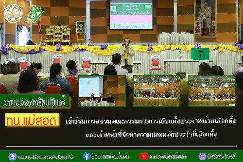 ว่าที่ร้อยตรี ประเสริฐ ปวงละคร นายกเทศมนตรีนครแม่สอด เข้าร่วมการอบรมคณะกรรมการการเลือกตั้งประจำหน่วยเลือกตั้ง และเจ้าหน้าที่รักษาความปลอดภัยประจำที่เลือกตั้ง โดยมี ว่าที่พันตรี ดร.ไพฑูรย์ ปริญญาธรรมกุล ผู้อำนวยการกองยุทธศาสตร์และงบประมาณ พร้อมด้วย นายขวัญชัย พะยอม หัวหน้าฝ่ายวิเทศสัมพันธ์ กองยุทธศาสตร์และงบประมาณ เป็นวิทยากรอำเภอ (ครู ข) ให้ความรู้ คณะกรรมการการเลือกตั้งประจำหน่วยเลือกตั้ง และเจ้าหน้าที่รักษาความปลอดภัยประจำที่เลือกตั้ง เพื่อเสริมสร้างความรู้ ความเข้าใจ และทักษะในการปฏิบัติงานให้แก่คณะกรรมการประจำหน่วยเลือกตั้ง และเจ้าหน้าที่รักษาความปลอดภัยประจำที่เลือกตั้ง โดยครอบคลุมการดำเนินงาน ในทุกขั้นตอนตั้งแต่ก่อนวันเลือกตั้ง จนถึงการนับคะแนน