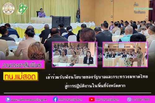 เมื่อวันอังคาร ที่ 7 มกราคม 2568 เวลา 09.00 น. ณ หอประชุมที่ว่าการอำเภอแม่สอด เทศบาลนครแม่สอด อำเภอแม่สอด จังหวัดตาก