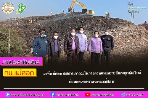 ว่าที่ร้อยตรี ประเสริฐ ปวงละคร นายกเทศมนตรีนครแม่สอด มอบหมายให้ นายกรรณ กัณฑ์นิล นายไกรสร กิจการ นายกรณพงศ์ คงปาน รองนายกเทศมนตรี พร้อมด้วย สมาชิกสภาเทศบาลนครแม่สอด และฝ่ายป้องกันและบรรเทาสาธารณภัยเทศบาลนครแม่สอด ลงพื้นที่ติดตามสถานการณ์และผลการดำเนินงานในการควบคุมและระงับเหตุเพลิงไหม้ บ่อขยะเทศบาลนครแม่สอด เพื่อเป็นการป้องกันการเกิดสะเก็ดไฟหรือการปะทุขึ้นอีกครั้ง
