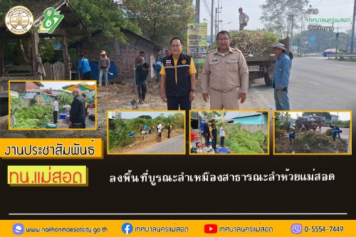 ว่าที่ร้อยตรี ประเสริฐ ปวงละคร นายกเทศมนตรีนครแม่สอด มอบหมายให้ นายไกรสร กิจการ และนายสุวิทย์ คามณีวงศ์ รองนายกเทศมนตรีนครแม่สอด พร้อมด้วย สมาชิกสภาเทศบาล รองปลัดเทศบาล และเจ้าหน้าที่กองช่างสุขาภิบาล ลงพื้นที่ตัดกิ่งไม้ถางหญ้า กำจัดเศษขยะวัชพืชบริเวณลำเหมืองสาธารณะลำห้วยแม่สอด ป้องกันน้ำท่วมขังและปรับภูมิทัศน์ให้สวยงาม