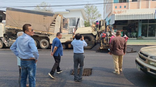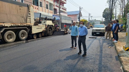 ว่าที่ร้อยตรี ประเสริฐ ปวงละคร นายกเทศมนตรีนครแม่สอด พร้อมด้วย คณะผู้บริหาร สมาชิกสภาเทศบาลนครแม่สอด และเจ้าหน้าที่ที่เกี่ยวข้องลงพื้นที่ดำเนินการตรวจสอบ ความเรียบร้อย การลาดยางแอสฟัลท์ติก ถนนประสาทวิถี ชุมชนดอนไชย บริเวณหน้าวัดดอนไชย ถึง วงเวียนหอนาฬิกาหน้าที่ว่าการอำเภอแม่สอด
