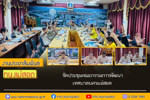 โดยมี นายกุล เครือวีระ นายกเทศมนตรีนครแม่สอด เป็นประธานในการประชุม พร้อมด้วย คณะกรรมการฯ เข้าร่วมการประชุมคณะกรรมการพัฒนาเทศบาลนครแม่สอด เพื่อจัดทำร่างแผนพัฒนาท้องถิ่น (พ.ศ. 2566 - 2570) เพิ่มเติม ครั้งที่ 2/2568 และร่างแผนพัฒนาท้องถิ่น (พ.ศ. 2566 - 2570) เปลี่ยนแปลง ครั้งที่ 3/2568