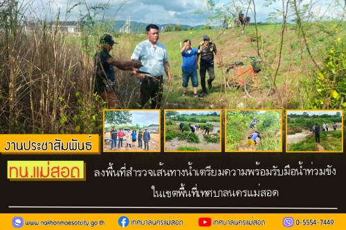 โดยนายกุล เครือวีระ นายกเทศมนตรีนครแม่สอด พร้อมด้วย นายวสุธร บุญมาก นายอภิปัตย์ อุปการะ รองนายกเทศมนตรีนครแม่สอด ที่ปรึกษานายกเทศมนตรี สมาชิกสภาเทศบาล และเจ้าหน้าที่ที่เกี่ยวข้อง ลงพื้นที่สำรวจเส้นทางน้ำ ทำการขุดลอกคลอง ลำห้วย กำจัดเศษวัชพืช เศษขยะ ต้นหญ้า กิ่งไม้ที่กีดขวางเส้นทางน้ำเตรียมความพร้อมรับมือน้ำท่วมขัง ในเขตพื้นที่เทศบาลนครแม่สอด