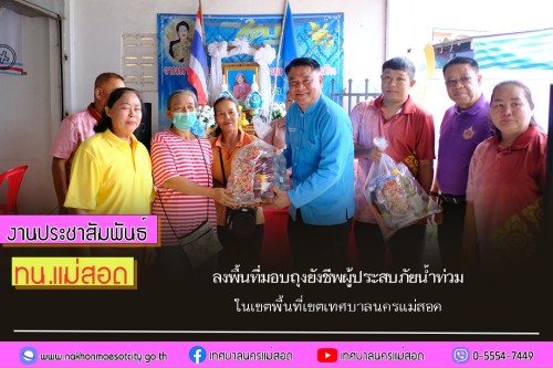 โดย นายกุล เครือวีระ นายกเทศมนตรีนครแม่สอด พร้อมด้วย คณะผู้บริหาร สมาชิกสภาเทศบาลนครแม่สอด และเจ้าหน้าที่กองสวัสดิการสังคม ลงพื้นที่มอบถุงยังชีพผู้ประสบภัยน้ำท่วม ในเขตพื้นที่เขตเทศบาลนครแม่สอด
