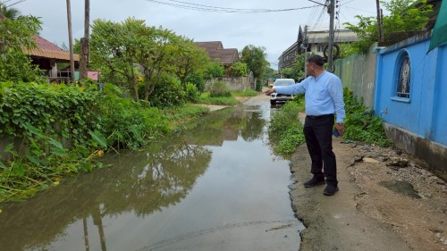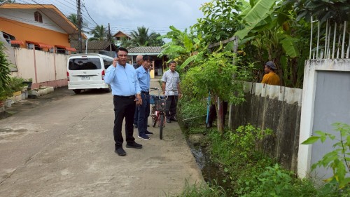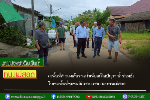 ลงพื้นที่สำรวจเส้นทางน้ำเพื่อแก้ไขปัญหาน้ำท่วมขังในเขตพื้นที่ชุมชนสักทอง เทศบาลนครแม่สอด