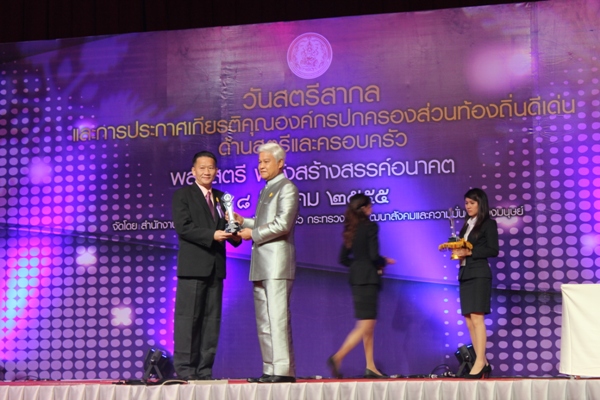 นายกเทศมนตรีนครแม่สอดรับรางวัลในฐานะองค์กรปกครองส่วนท้องถิ่นดีเด่นที่ด้านสตรีและครอบครัว ในงานวันสตรีสากลที่เมืองทองธานี กรุงเทพฯ