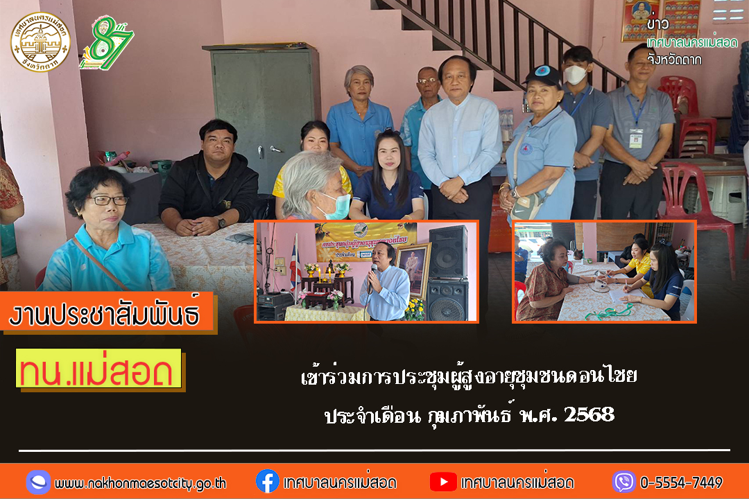 เทศบาลนครแม่สอด เข้าร่วมการประชุมผู้สูงอายุชุมชนดอนไชย ประจำเดือน กุมภาพันธ์ พ.ศ. 2568