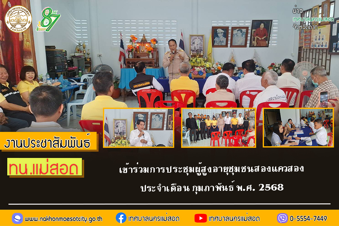 เทศบาลนครแม่สอด เข้าร่วมการประชุมผู้สูงอายุชุมชนสองแควสอง ประจำเดือน กุมภาพันธ์ พ.ศ.2568