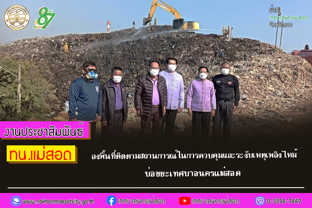 ทน.แม่สอด ลงพื้นที่ติดตามสถานการณ์ในการควบคุมและระงับเหตุเพลิงไหม้ บ่อขยะเทศบาลนครแม่สอด