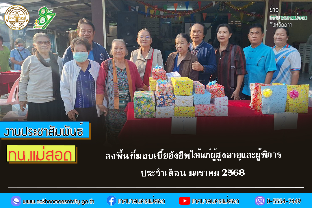 เทศบาลนครแม่สอด ลงพื้นที่มอบเบี้ยยังชีพให้แก่ผู้สูงอายุและผู้พิการ ประจำเดือน มกราคม 2568